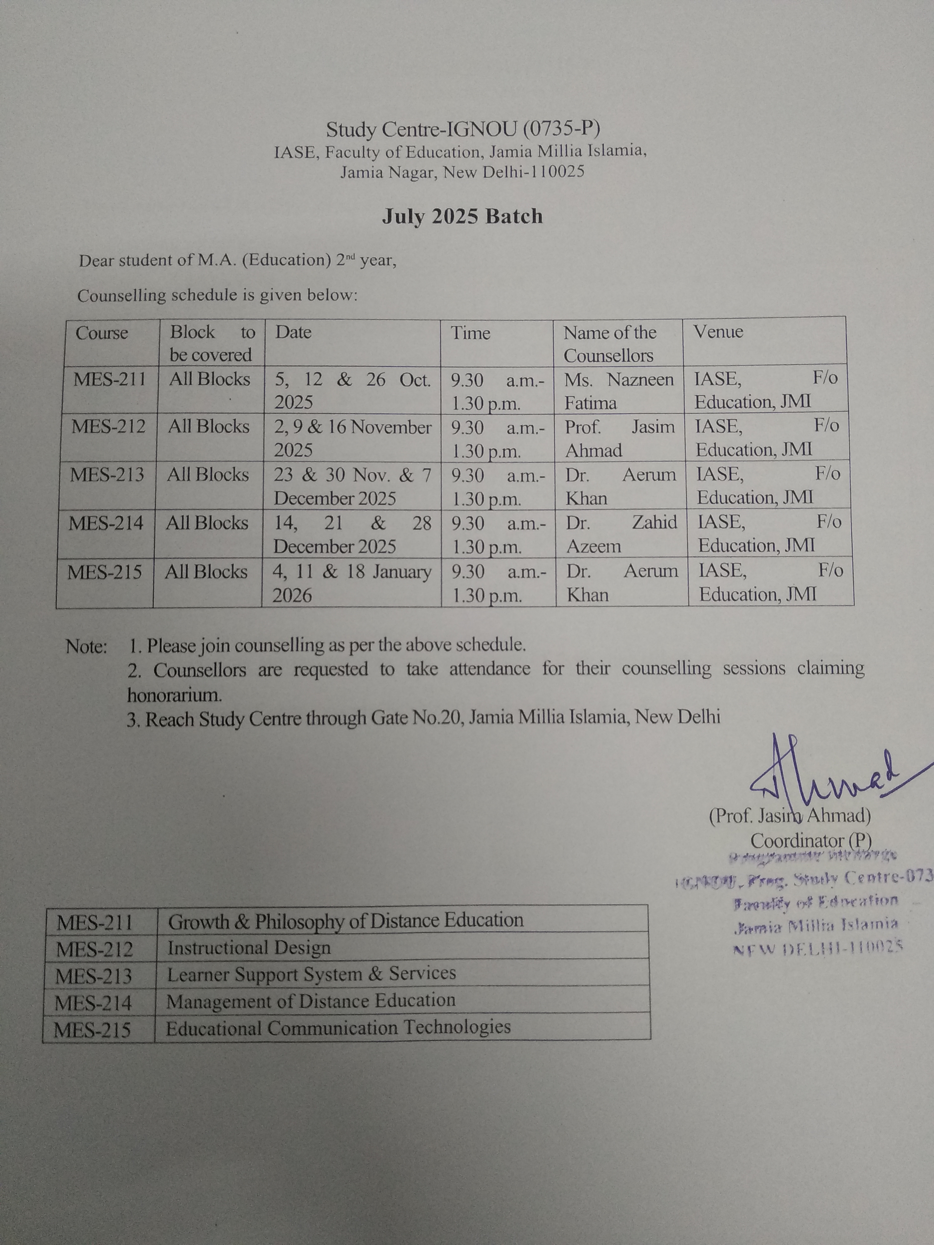 Online Counselling classes for the learners of CPSCM programme July 2025 session (Nodal RC- Noida)- reg